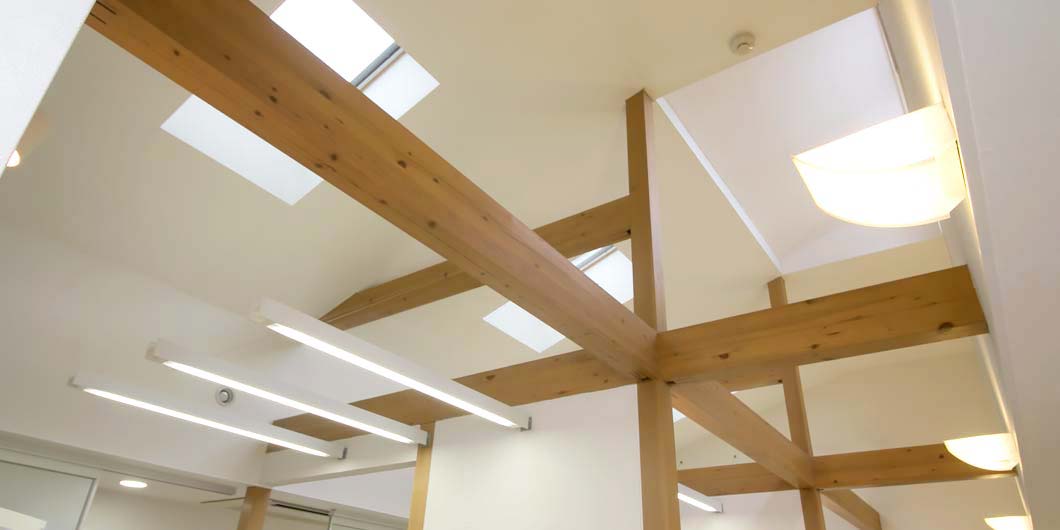 天窓から陽光が差し込む明るい診察室、お花や小物を飾ったりと室内の美観やインテリアにもこだわっています。